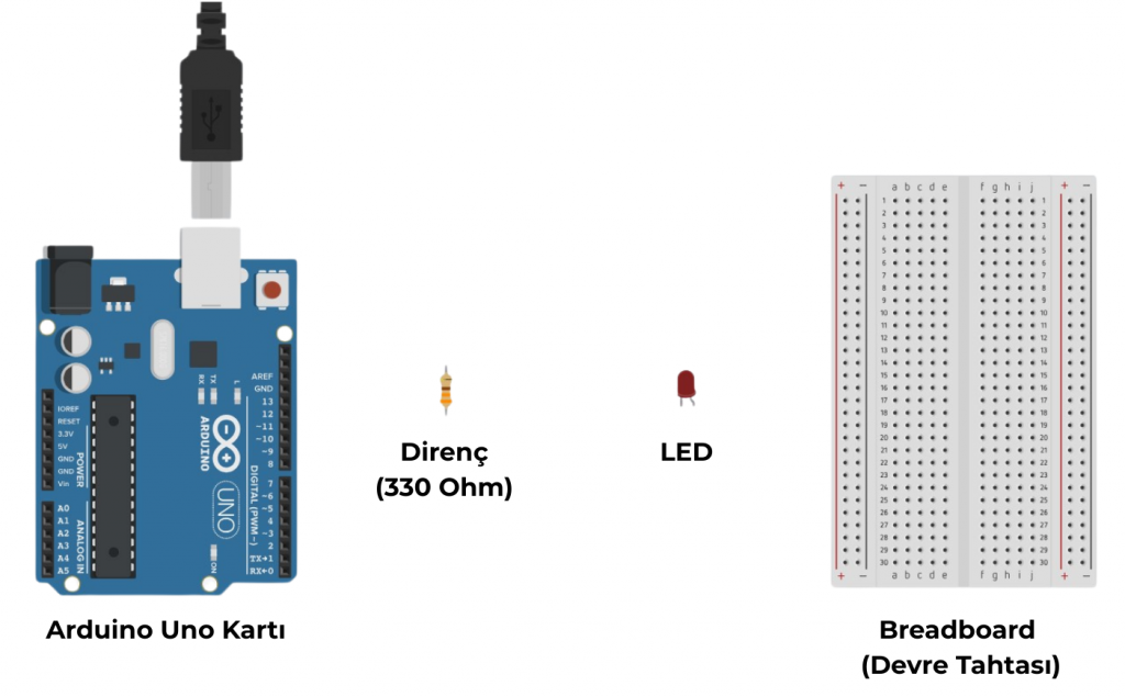 Bu uygulama sayesinde Arduino’da pin mantığını, OUTPUT kavramını ve temel kod yapısını öğrenmiş olacağız.